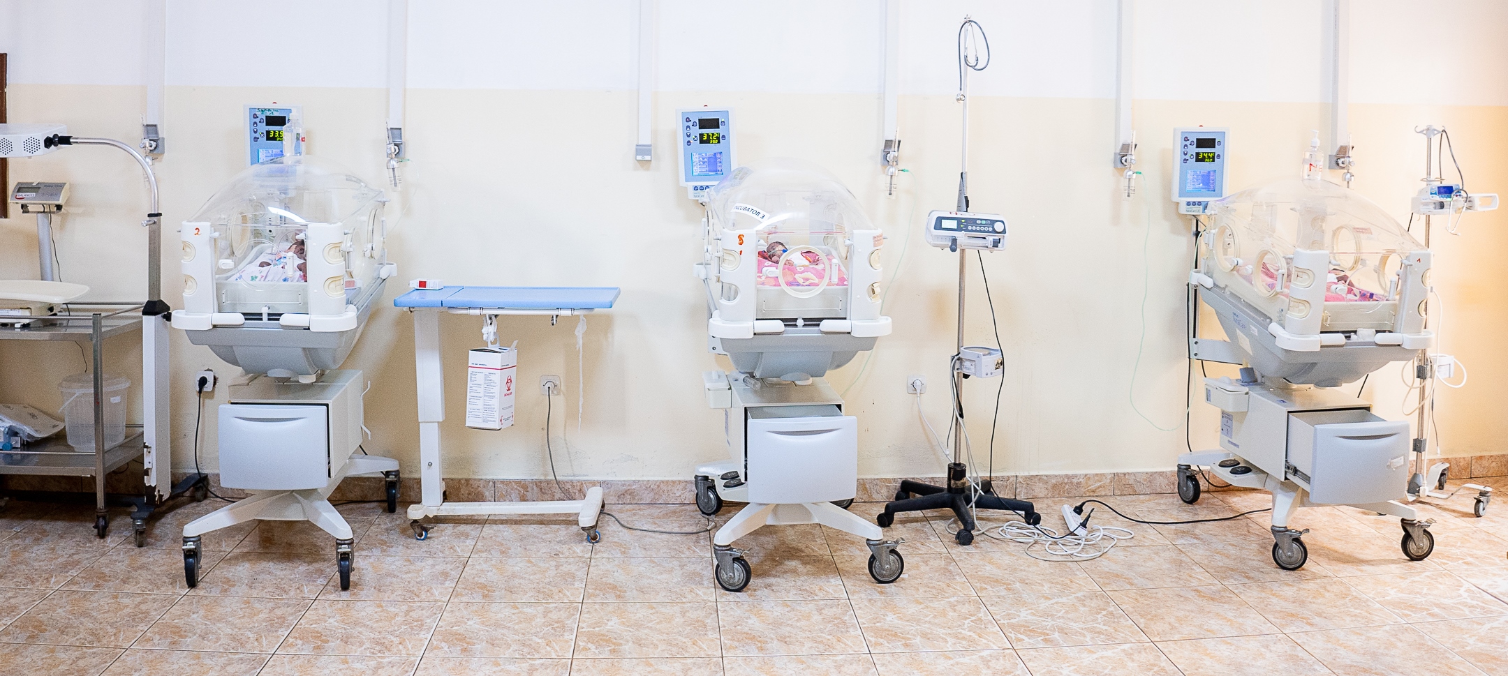 Neonatology Unity: Has capacity of 33 beds including 13 incubators. The neonatology unity receives new born premature babies and ill new born from CHUB/Maternity and from District hospitals. District hospitals to call before transferring a baby. The service works as a center for Kangaroo mother care, with 10 special chairs for the method. The unit is also a training centre for nurses from District hospitals and nursing schools.